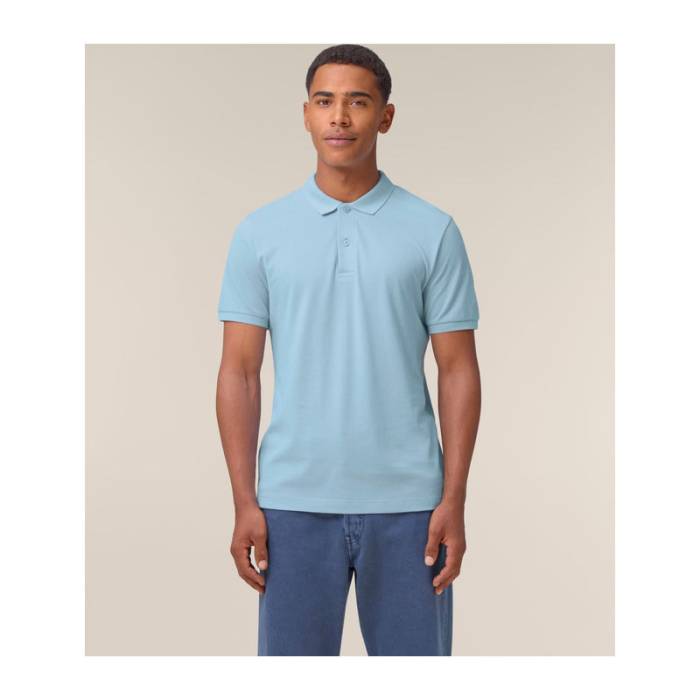 Prémium minőségű, 185 g/m² súlyú férfi póló, amely tökéletes választás melegebb időben. 100% organikus pamutból készült, újrahasznosított gombokkal. Stílusos és fenntartható, ideális egyedi eblémázáshoz. Különböző színekben elérhető.