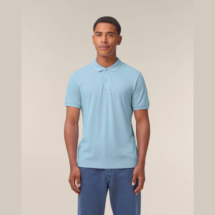 Prémium minőségű, 185 g/m² súlyú férfi póló, amely tökéletes választás melegebb időben. 100% organikus pamutból készült, újrahasznosított gombokkal. Stílusos és fenntartható, ideális egyedi eblémázáshoz. Különböző színekben elérhető.