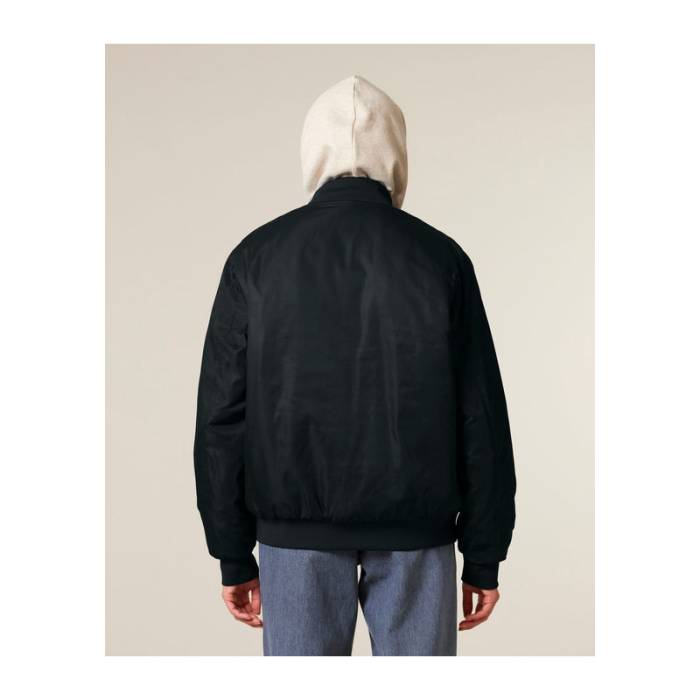 Ez a klasszikus uniszex bomber dzseki ötvözi a vintage stílust a modern eleganciával. 100%-ban újrahasznosított poliészterből készült.