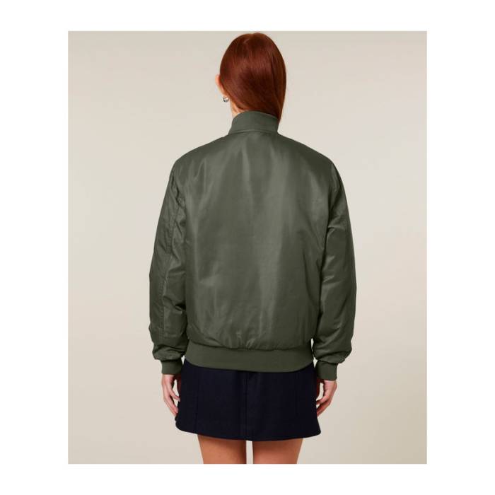 Ez a klasszikus uniszex bomber dzseki ötvözi a vintage stílust a modern eleganciával. 100%-ban újrahasznosított poliészterből készült.