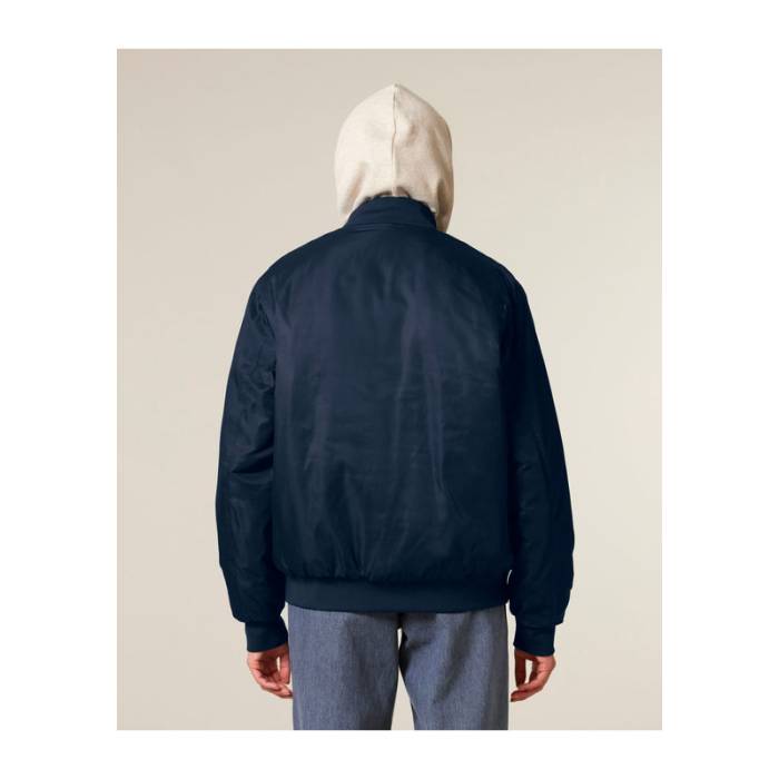 Ez a klasszikus uniszex bomber dzseki ötvözi a vintage stílust a modern eleganciával. 100%-ban újrahasznosított poliészterből készült.