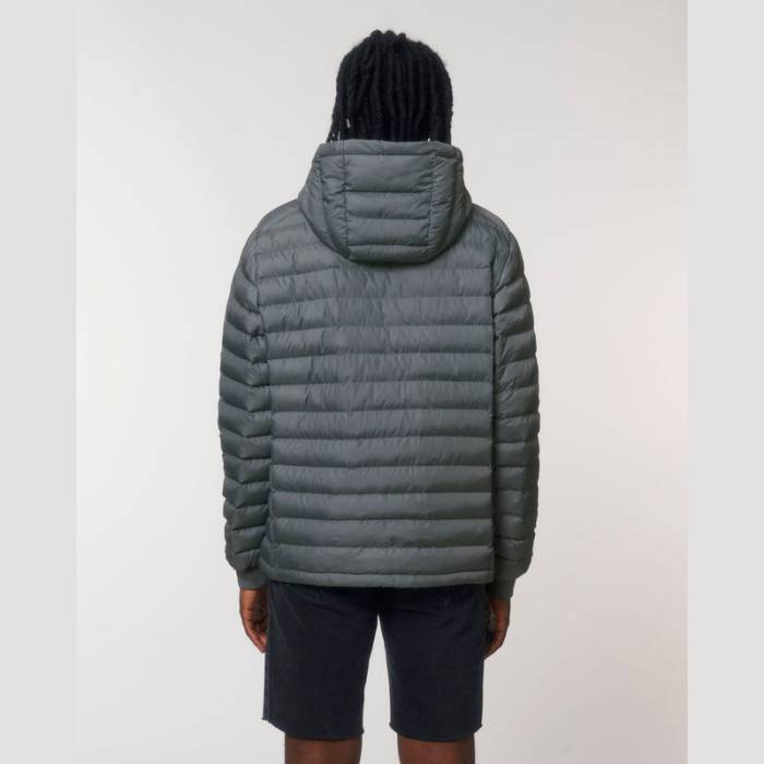 Bevarrt ujj. Magas gallér lecsatolható kapucnival, matt fém rejtett patentokkal. A kapucsi nyílása és az alsó szegély állítható műanyag záróval és rugalmas zsinórral. Fordított nejlon cipzár elöl, középen. Cipzáras zsebek díszszalaggal ellátott húzóval. Teljesen steppelt kivitel. Oldalpanelek a jobb illeszkedésért. Puha 1x1 bordás mandzsetta az ujjak végén. A belső varratok szegéllyel eldolgozva.