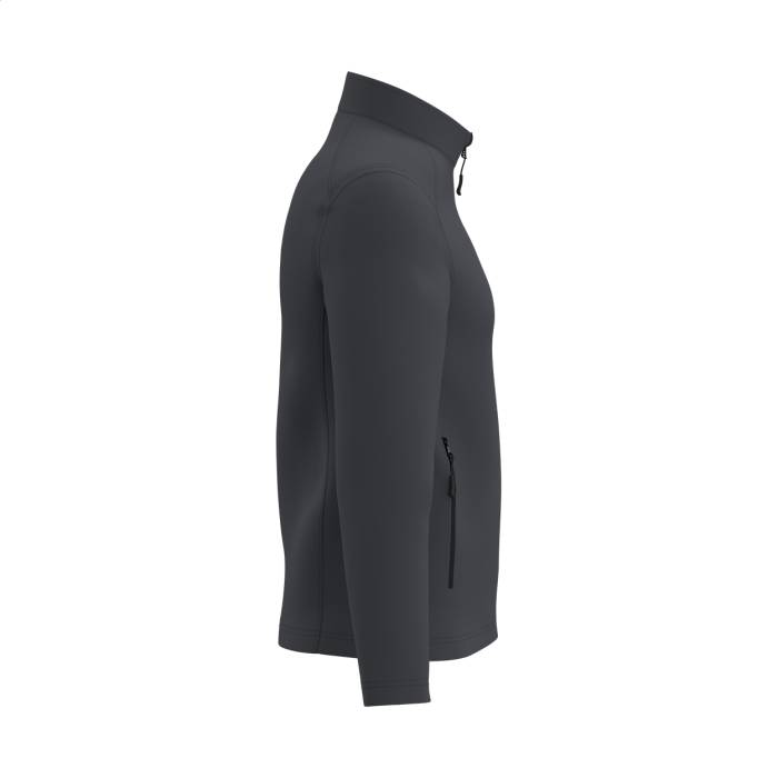 Kétrétegű, cipzáras softshell kabát cipzáras oldalsó zsebekkel. Kontrasztos cipzárakkal. Vízlepergető anyagból. Külső: 95% poliészter és 5% elasztán. Belső: 100% poliészter mikro polár gyapjú. iDeal Basic márkatermék.