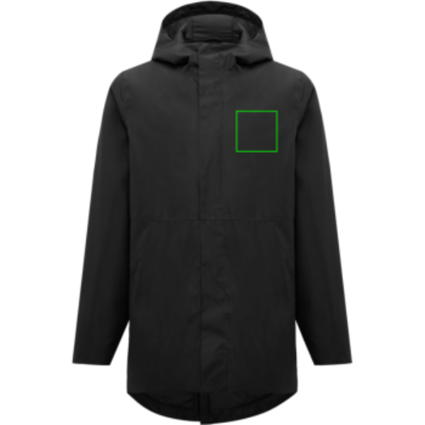 Uniszex, bélelt, vízálló parka 100% újrahasznosított poliészterből. 3 000 mm vízálló, légáteresztő és szélálló. Klasszikus parka jellemzők: hosszabb hátrész, hátsó hasítás, kétirányú CF cipzár, négy rejtett patent, tiszta ujjvég extra belső félmandzsettával, kapucni rögzítőkkel, vízszintes díszvarrások. Bélelt poliészter lapokkal, finom taft béléssel. Rejtett cipzár az alsó szegélynél és bal mellrésznél díszítéshez. Teljes ruhadarab újrahasznosított cérnával varrva. Hátnál letéphető méretcímke, IQONIQ Craft címke, gondozási címke belső oldalsó varrásnál. Az anyag hitelessége és környezeti állítások AWARE™ technológiával, fizikai nyomkövetővel és blokklánccal garantált. QR-kód beolvasásával digitális útlevél érhető el.