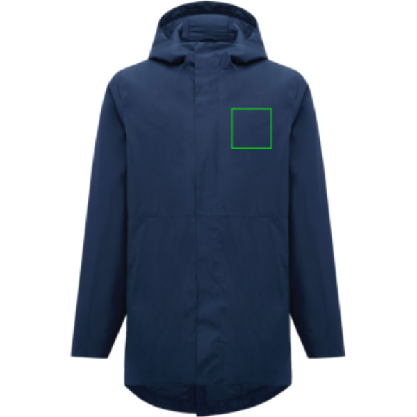 Uniszex, bélelt, vízálló parka 100% újrahasznosított poliészterből. 3 000 mm vízálló, légáteresztő és szélálló. Klasszikus parka jellemzők: hosszabb hátrész, hátsó hasítás, kétirányú CF cipzár, négy rejtett patent, tiszta ujjvég extra belső félmandzsettával, kapucni rögzítőkkel, vízszintes díszvarrások. Bélelt poliészter lapokkal, finom taft béléssel. Rejtett cipzár az alsó szegélynél és bal mellrésznél díszítéshez. Teljes ruhadarab újrahasznosított cérnával varrva. Hátnál letéphető méretcímke, IQONIQ Craft címke, gondozási címke belső oldalsó varrásnál. Az anyag hitelessége és környezeti állítások AWARE™ technológiával, fizikai nyomkövetővel és blokklánccal garantált. QR-kód beolvasásával digitális útlevél érhető el.