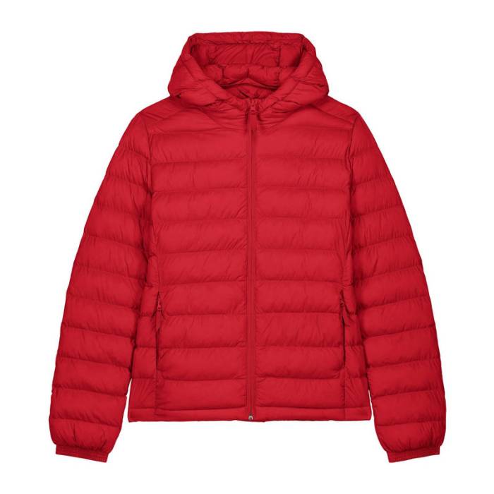 Bevarrt ujj. Magas gallér egybevarrt kapucnival. A kapucsi nyílása és az alsó szegély állítható műanyag záróval és rugalmas zsinórral. Fordított nejlon cipzár elöl, középen. Cipzáras zsebek díszszalaggal ellátott húzóval. Teljesen steppelt kivitel. Oldalpanelek a jobb illeszkedésért. Az anyagával megegyező, rugalmas mandzsetta. A belső varratok szegéllyel eldolgozva. Az alsó szegély állítható műanyag záróval és rugalmas zsinórral.