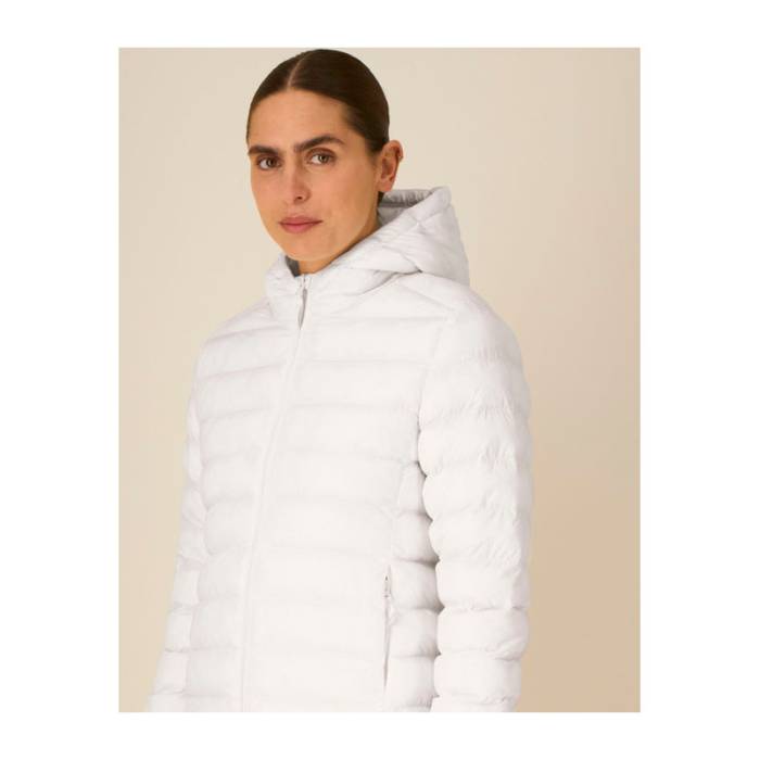 Bevarrt ujj. Magas gallér egybevarrt kapucnival. A kapucsi nyílása és az alsó szegély állítható műanyag záróval és rugalmas zsinórral. Fordított nejlon cipzár elöl, középen. Cipzáras zsebek díszszalaggal ellátott húzóval. Teljesen steppelt kivitel. Oldalpanelek a jobb illeszkedésért. Az anyagával megegyező, rugalmas mandzsetta. A belső varratok szegéllyel eldolgozva. Az alsó szegély állítható műanyag záróval és rugalmas zsinórral.