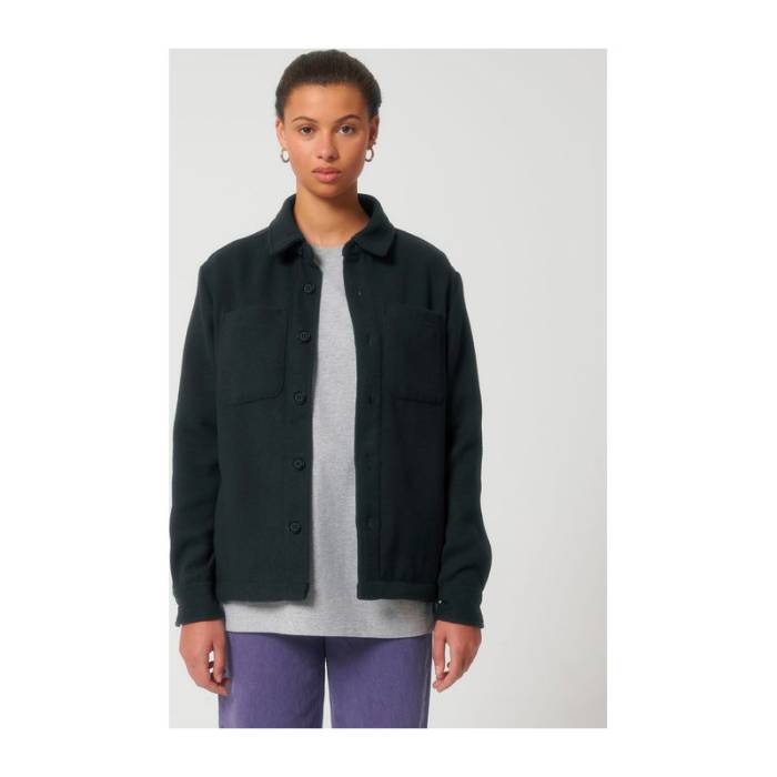 Elegáns, bélés nélküli ingkabát, amely gombos elülső résszel, mell- és oldalzsebekkel, valamint azonos anyagból készült gallérral rendelkezik. Tartalmaz tartalék gombokat és belső akasztóhurkot. Fenntartható, újrahasznosított poliészterből készült.