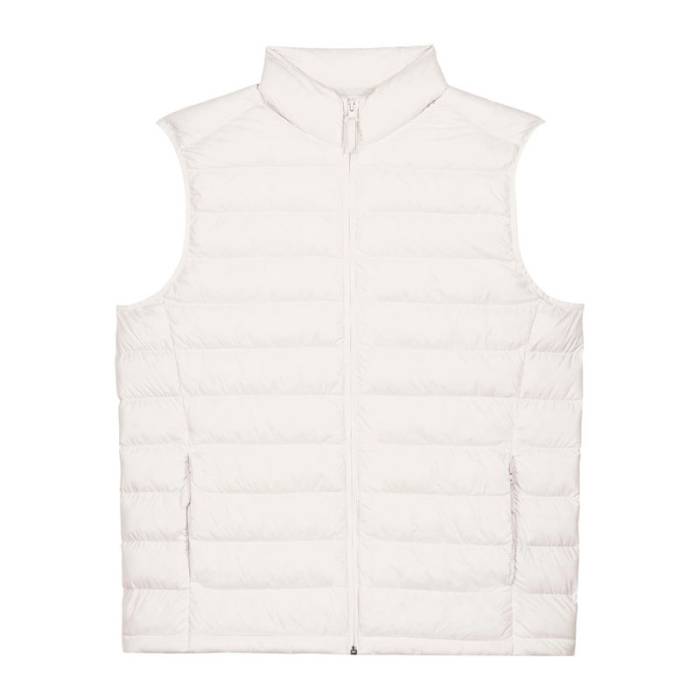 Ujjatlan kialakítás. Magas gallér. Fordított nejlon cipzár elöl, középen. Cipzáras zsebek díszszalaggal ellátott húzóval. Rugalmas szegőszalag a karkivágásnál. Teljesen steppelt kivitel. Oldalpanelek a jobb illeszkedésért. A belső varratok szegéllyel eldolgozva. Az alsó szegély állítható műanyag záróval és rugalmas zsinórral.