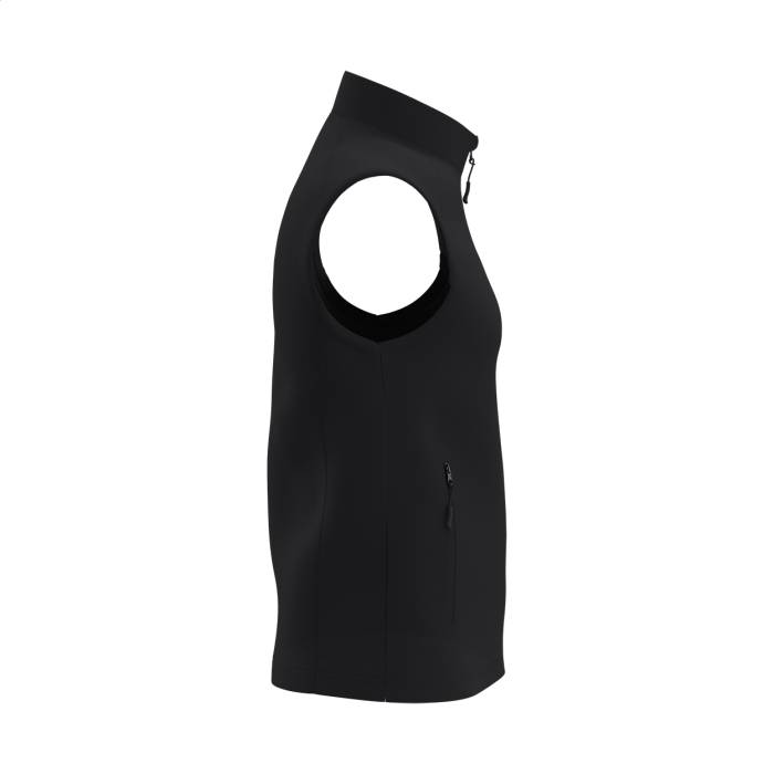 Kétrétegű, cipzáras softshell mellény cipzáras oldalsó zsebekkel. Kontrasztos cipzárakkal. Vízlepergető anyagból. Külső: 95% poliészter és 5% elasztán. Belső: 100% poliészter mikro polár gyapjú. iDeal Basic márkatermék.