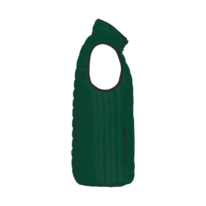 Cipzáras és bélelt, steppelt testmelegítő mellény cipzáras oldalzsebekkel. 100% poliamid. Kariban márkatermék.