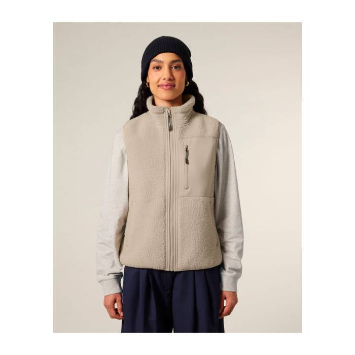 Uniszex sherpa mellény, amely 100% újrahasznosított poliészterből készült. Softshell részletekkel, bolyhosodásmentes polár anyaggal és rejtett cipzárakkal rendelkezik. Tökéletes választás egyedi kültéri viselethez.