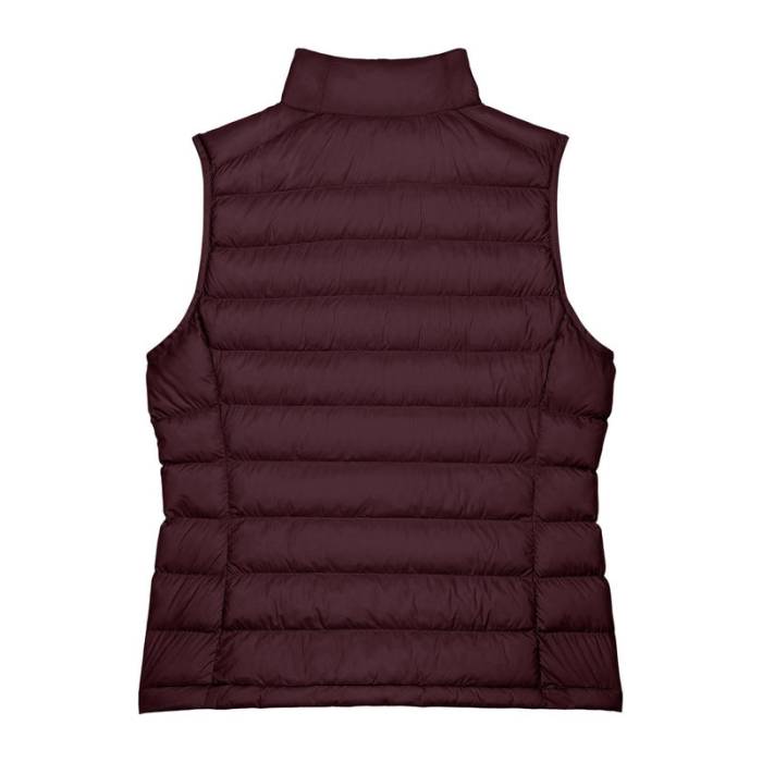 Ujjatlan kialakítás. Magas gallér. Fordított nejlon cipzár elöl, középen. Cipzáras zsebek díszszalaggal ellátott húzóval. Rugalmas szegőszalag a karkivágásnál. Teljesen steppelt kivitel. Oldalpanelek a jobb illeszkedésért. A belső varratok szegéllyel eldolgozva. Az alsó szegély állítható műanyag záróval és rugalmas zsinórral.