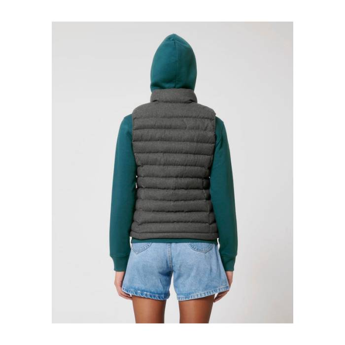 Kényelmes és divatos, ez az ujjatlan mellény magas gallérral, steppelt kialakítással és állítható szegéllyel rendelkezik. Cipzáras zsebek és oldalpanelekkel kiemelt, előnyös szabásvonal teszi különlegessé.