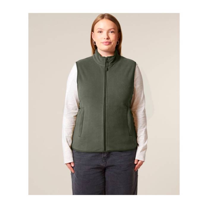 Prémium minőségű női ujjatlan polár mellény, amely 100% újrahasznosított poliészterből készült. Kiváló kényelmet és szabad mozgást biztosít, valamint testre szabható az anti-pill bevonatnak és a cipzáras zsebeknek köszönhetően.