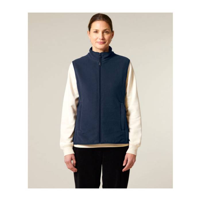 Prémium minőségű női ujjatlan polár mellény, amely 100% újrahasznosított poliészterből készült. Kiváló kényelmet és szabad mozgást biztosít, valamint testre szabható az anti-pill bevonatnak és a cipzáras zsebeknek köszönhetően.