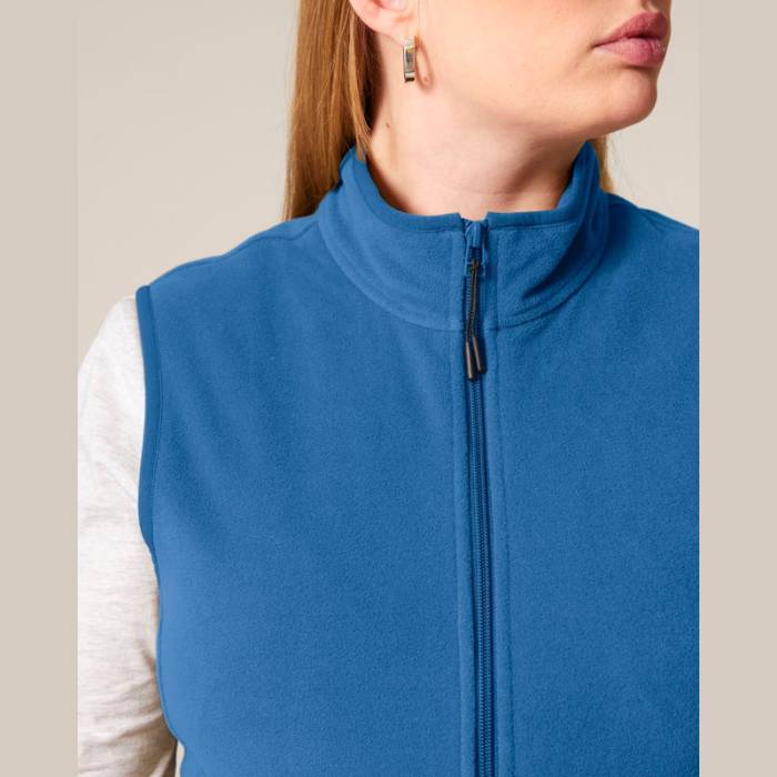Prémium minőségű női ujjatlan polár mellény, amely 100% újrahasznosított poliészterből készült. Kiváló kényelmet és szabad mozgást biztosít, valamint testre szabható az anti-pill bevonatnak és a cipzáras zsebeknek köszönhetően.