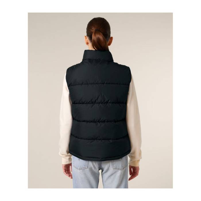 Az uniszex prémium pufi mellény -15°C-ig biztosít kellemes meleget. 100%-ban újrahasznosított poliészterből készült. Cipzáras zsebekkel, álló gallérral és sokoldalú pántokkal rendelkezik.