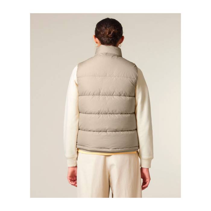 Az uniszex prémium pufi mellény -15°C-ig biztosít kellemes meleget. 100%-ban újrahasznosított poliészterből készült. Cipzáras zsebekkel, álló gallérral és sokoldalú pántokkal rendelkezik.
