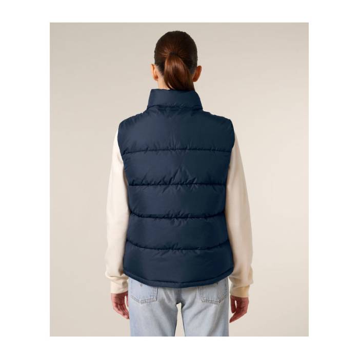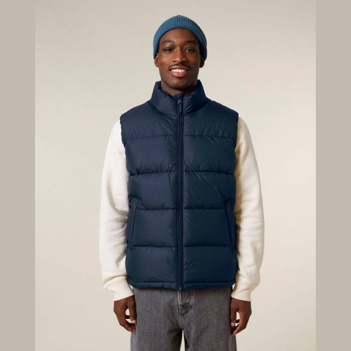 Az uniszex prémium pufi mellény -15°C-ig biztosít kellemes meleget. 100%-ban újrahasznosított poliészterből készült. Cipzáras zsebekkel, álló gallérral és sokoldalú pántokkal rendelkezik.