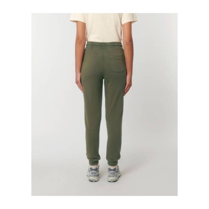 Elegáns uniszex jogger nadrág bordázott derékrésszel, harmonizáló húzózsinórokkal és divatos, mosott megjelenéssel. A részletek közé tartoznak a fém fűzőlyukak és a hátsó zseb. Egyedi ruhafestési eljárással készült; a színek eltérőek lehetnek.