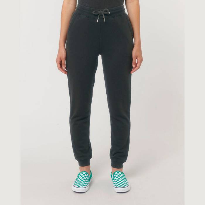 Elegáns uniszex jogger nadrág bordázott derékrésszel, harmonizáló húzózsinórokkal és divatos, mosott megjelenéssel. A részletek közé tartoznak a fém fűzőlyukak és a hátsó zseb. Egyedi ruhafestési eljárással készült; a színek eltérőek lehetnek.