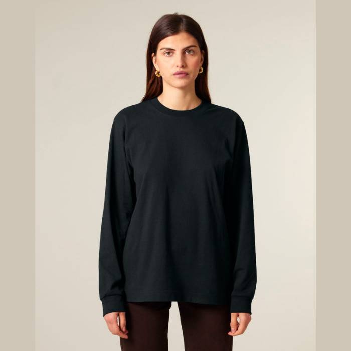 Uniszex, nehéz anyagú, hosszú ujjú póló, amely modern, stílust sugároz. 100% organikus pamutból készült, így tökéletes választás az átmeneti időszakokra vagy réteges öltözködéshez. Kiválóan alkalmas egyedi emblémázáshoz.