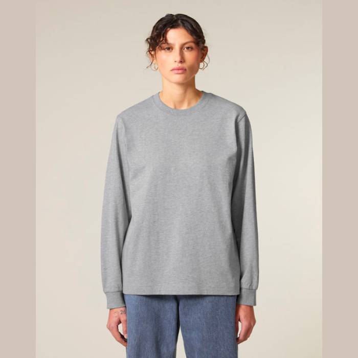 Uniszex, nehéz anyagú, hosszú ujjú póló, amely modern, stílust sugároz. 100% organikus pamutból készült, így tökéletes választás az átmeneti időszakokra vagy réteges öltözködéshez. Kiválóan alkalmas egyedi emblémázáshoz.