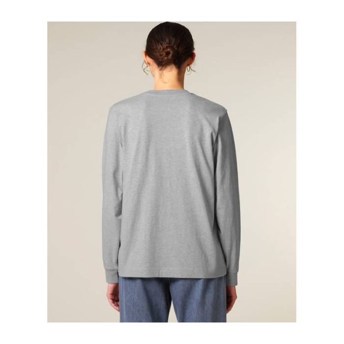 Uniszex, nehéz anyagú, hosszú ujjú póló, amely modern, stílust sugároz. 100% organikus pamutból készült, így tökéletes választás az átmeneti időszakokra vagy réteges öltözködéshez. Kiválóan alkalmas egyedi emblémázáshoz.