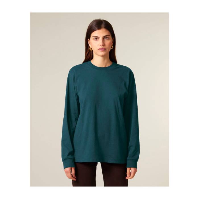 Uniszex, nehéz anyagú, hosszú ujjú póló, amely modern, stílust sugároz. 100% organikus pamutból készült, így tökéletes választás az átmeneti időszakokra vagy réteges öltözködéshez. Kiválóan alkalmas egyedi emblémázáshoz.