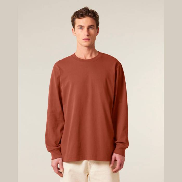 Uniszex, nehéz anyagú, hosszú ujjú póló, amely modern, stílust sugároz. 100% organikus pamutból készült, így tökéletes választás az átmeneti időszakokra vagy réteges öltözködéshez. Kiválóan alkalmas egyedi emblémázáshoz.
