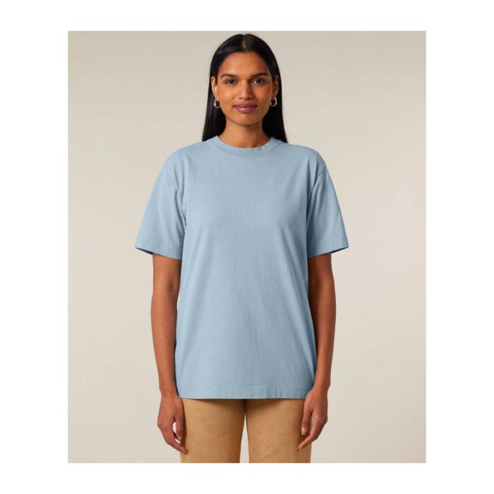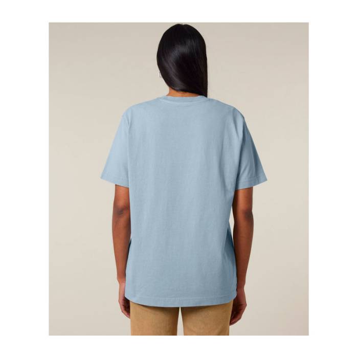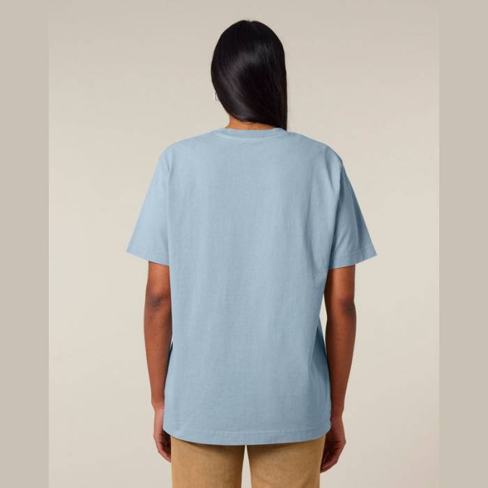 Uniszex, 100% organikus pamutból készült, 240 g/m² súlyú póló vintage megjelenéssel. Környezetbarát, túlméretezett szabás, amely kiválóan alkalmas egyedi nyomatokhoz. Egyedi mosott stílus, amely árnyékolást biztosít a varrások mentén.