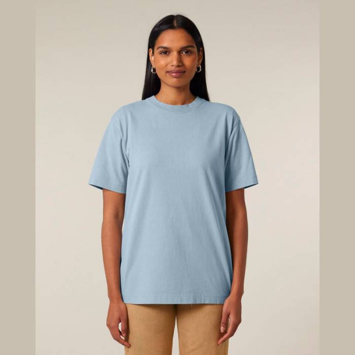 Uniszex, 100% organikus pamutból készült, 240 g/m² súlyú póló vintage megjelenéssel. Környezetbarát, túlméretezett szabás, amely kiválóan alkalmas egyedi nyomatokhoz. Egyedi mosott stílus, amely árnyékolást biztosít a varrások mentén.