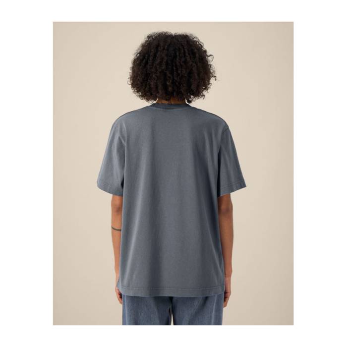 Uniszex, 100% organikus pamutból készült, 240 g/m² súlyú póló vintage megjelenéssel. Környezetbarát, túlméretezett szabás, amely kiválóan alkalmas egyedi nyomatokhoz. Egyedi mosott stílus, amely árnyékolást biztosít a varrások mentén.