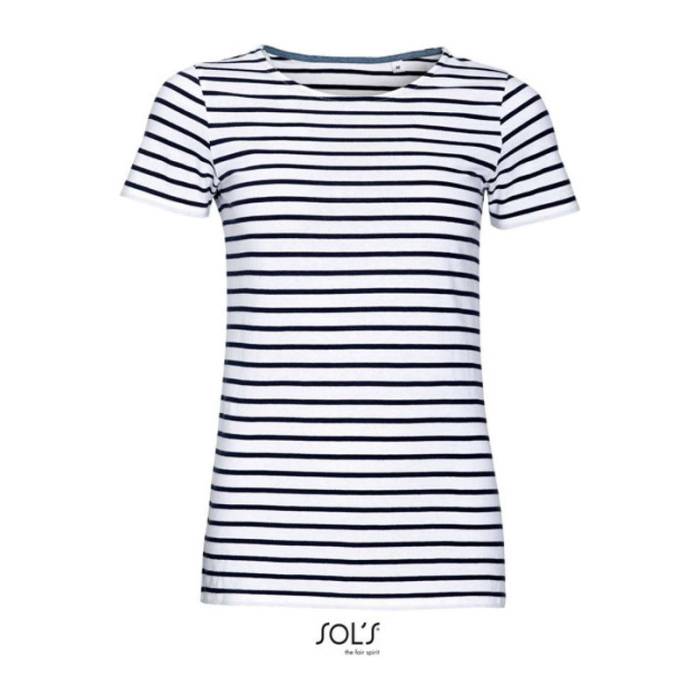 SOL'S MILES WOMEN - KEREKNYAKÚ CSÍKOS PÓLÓ - White/NavyEA-SO01399WH/NV-L