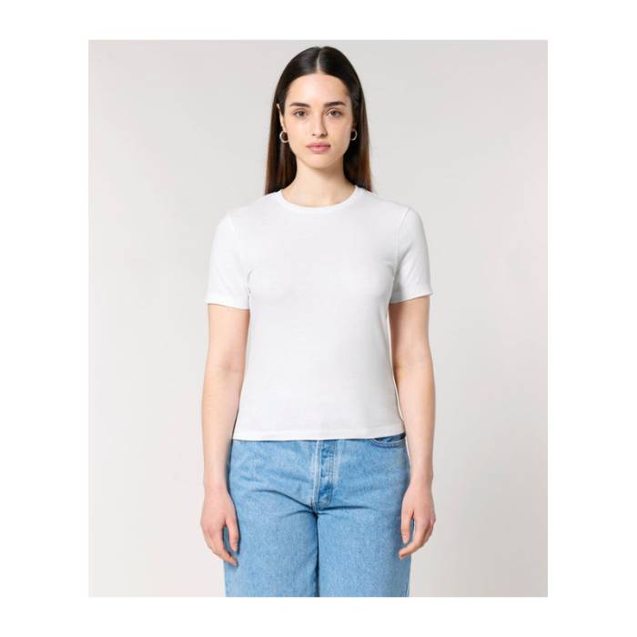 A Stella Ella egy modern, nőies karcsúsított póló, amely 100% organikus pamutból készült. A 180 g/m² súlyú, puha anyagának köszönhetően kellemes érzést nyújt, sokoldalú stíluslehetőségeket kínál.