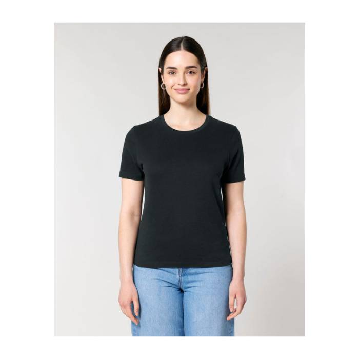 A Stella Ella egy modern, nőies karcsúsított póló, amely 100% organikus pamutból készült. A 180 g/m² súlyú, puha anyagának köszönhetően kellemes érzést nyújt, sokoldalú stíluslehetőségeket kínál.