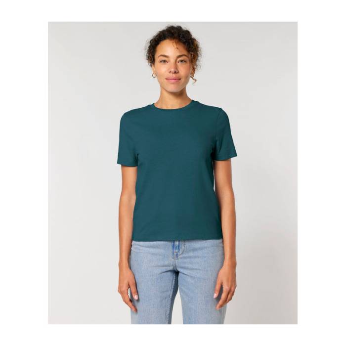 A Stella Ella egy modern, nőies karcsúsított póló, amely 100% organikus pamutból készült. A 180 g/m² súlyú, puha anyagának köszönhetően kellemes érzést nyújt, sokoldalú stíluslehetőségeket kínál.