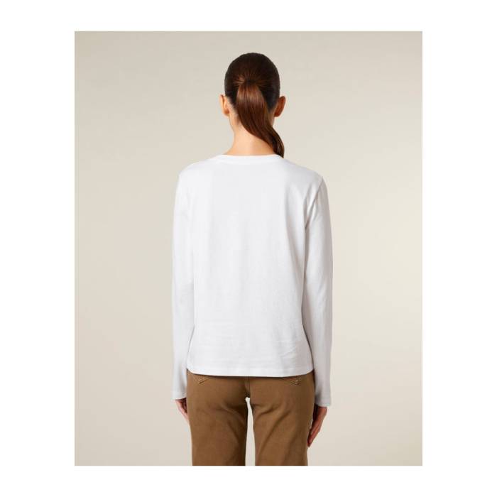 Női hosszú ujjú póló 100% organikus pamutból készült, kényelmes és kiváló emblémázási lehetőséget biztosít. Ideális választás hűvösebb időjárásra, minden korosztály és testalkat számára.