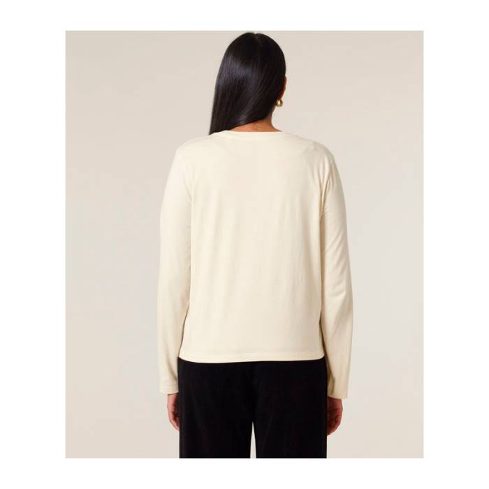 Női hosszú ujjú póló 100% organikus pamutból készült, kényelmes és kiváló emblémázási lehetőséget biztosít. Ideális választás hűvösebb időjárásra, minden korosztály és testalkat számára.