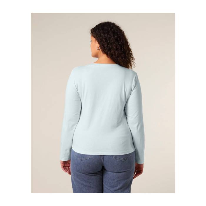 Női hosszú ujjú póló 100% organikus pamutból készült, kényelmes és kiváló emblémázási lehetőséget biztosít. Ideális választás hűvösebb időjárásra, minden korosztály és testalkat számára.