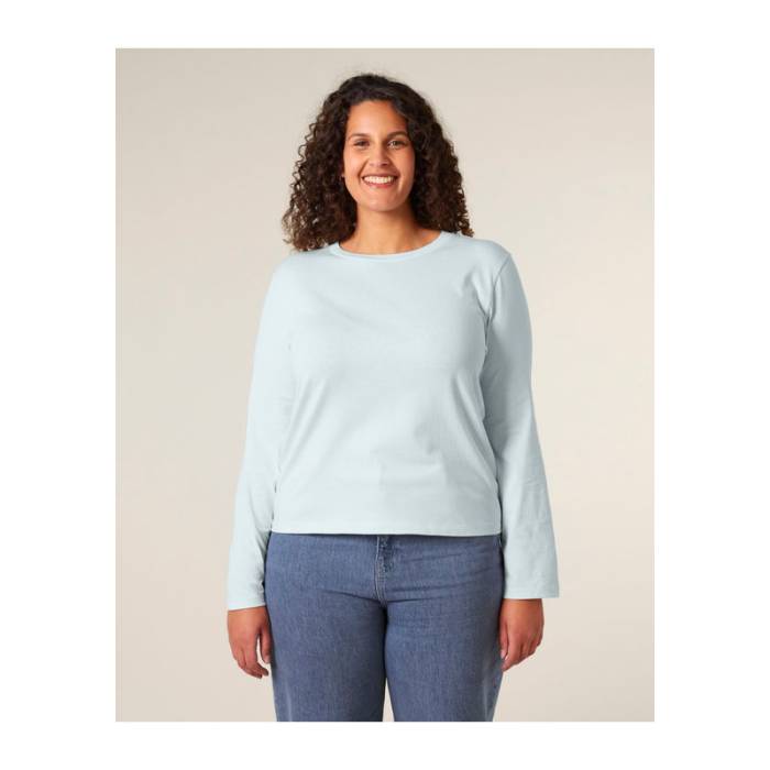 Női hosszú ujjú póló 100% organikus pamutból készült, kényelmes és kiváló emblémázási lehetőséget biztosít. Ideális választás hűvösebb időjárásra, minden korosztály és testalkat számára.