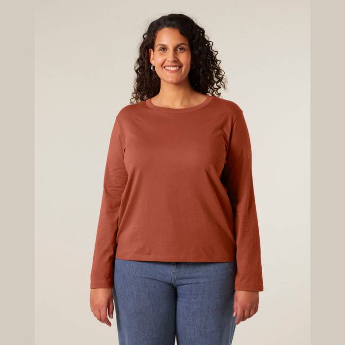Női hosszú ujjú póló 100% organikus pamutból készült, kényelmes és kiváló emblémázási lehetőséget biztosít. Ideális választás hűvösebb időjárásra, minden korosztály és testalkat számára.