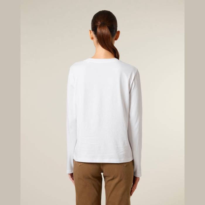Női hosszú ujjú póló 100% organikus pamutból készült, kényelmes és kiváló emblémázási lehetőséget biztosít. Ideális választás hűvösebb időjárásra, minden korosztály és testalkat számára.