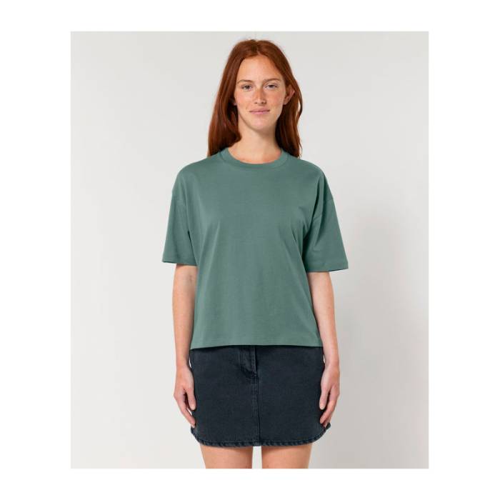 A Stella Nova egy prémium minőségű, rövidített fazonú póló, 100% organikus pamutból készült, 155 g/m² súlyú anyaga biztosítja a laza, mégis elegáns esést. Ideális választás a modern öltözetekhez.