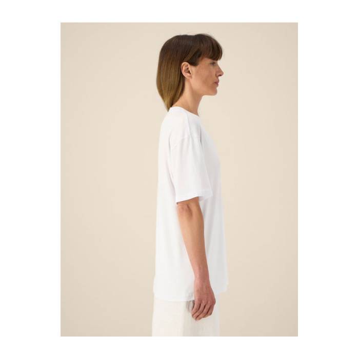 A The Blaker egy könnyű pamut-TENCEL™ Modal keverékből készült unisex póló. Puha tapintást, légáteresztő kényelmet és természetes esést biztosít lezser szabással. A könnyed viselet érdekében bevarrt ujjakkal, bordás nyakkivágással és modern, előrehelyezett vállvarrással készült a jobb illeszkedésért. Az ikertűs tűzés biztosítja a tartós szerkezetet, a belső nyakszalag pedig növeli a kényelmet. Letisztult kidolgozásával ez a póló ideális alap emblémázáshoz – tökéletes merchandise termék trendközpontú kollekciókhoz.