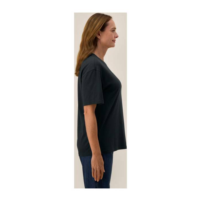 A The Blaker egy könnyű pamut-TENCEL™ Modal keverékből készült unisex póló. Puha tapintást, légáteresztő kényelmet és természetes esést biztosít lezser szabással. A könnyed viselet érdekében bevarrt ujjakkal, bordás nyakkivágással és modern, előrehelyezett vállvarrással készült a jobb illeszkedésért. Az ikertűs tűzés biztosítja a tartós szerkezetet, a belső nyakszalag pedig növeli a kényelmet. Letisztult kidolgozásával ez a póló ideális alap emblémázáshoz – tökéletes merchandise termék trendközpontú kollekciókhoz.