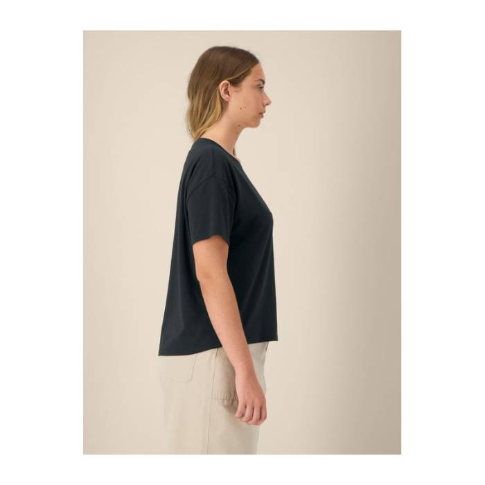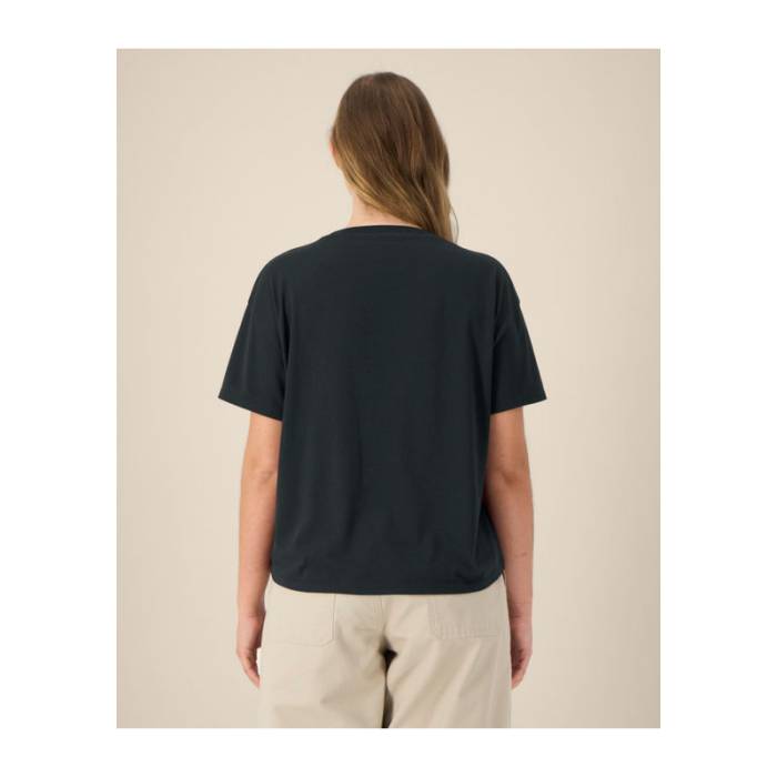 A The Stella Etta a mi kifinomult női pamut-TENCEL™ Modal pólónk. Puha tapintást, természetes lágy esést és lezser szabást kínál a maximális kényelem érdekében. A bevarrt ujjak és a hosszított, íves hátsó szegély kiemelik a nőies formát, miközben a bordás nyakkivágás és az ikertűs tűzés garantálják a tartós minőséget. Ez a könnyű és légáteresztő alapdarab elegáns és kifinomult érzetet kelt – ideális meleg napokra vagy réteges öltözködéshez. Prémium felülete tökéletes nyomtatáshoz vagy hímzéshez.