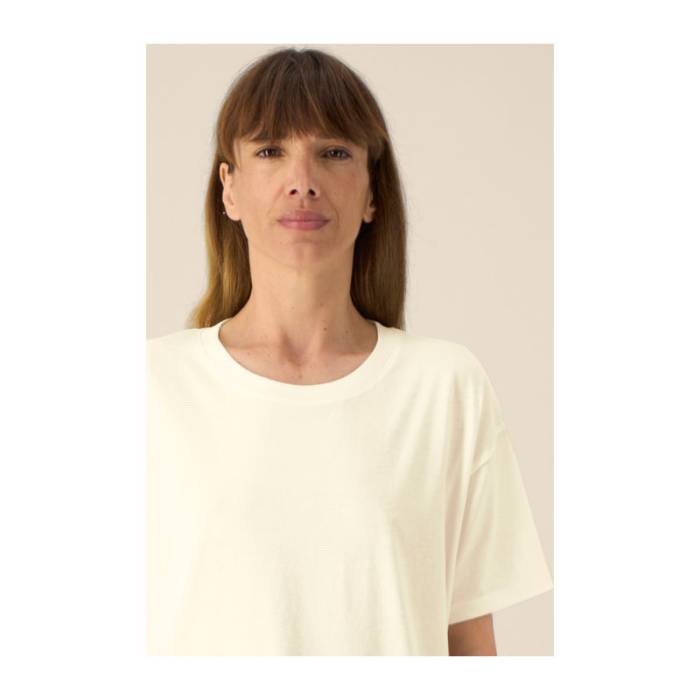 A The Stella Etta a mi kifinomult női pamut-TENCEL™ Modal pólónk. Puha tapintást, természetes lágy esést és lezser szabást kínál a maximális kényelem érdekében. A bevarrt ujjak és a hosszított, íves hátsó szegély kiemelik a nőies formát, miközben a bordás nyakkivágás és az ikertűs tűzés garantálják a tartós minőséget. Ez a könnyű és légáteresztő alapdarab elegáns és kifinomult érzetet kelt – ideális meleg napokra vagy réteges öltözködéshez. Prémium felülete tökéletes nyomtatáshoz vagy hímzéshez.