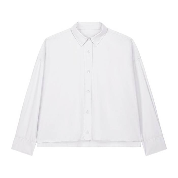 A The Stella Harper egy könnyű, organikus poplin pamutból készült női boxy ing. Puha tapintást és légáteresztő kényelmet biztosít. Modern, túlméretezett (oversized) szabása nőies formával párosul; strukturált ingnyakkal, rávarrt gomboláspánttal és szögletes, dupla rakással ellátott mandzsettákkal készül. Az ikertűs tűzés a vállrészén és a varratoknál tartósságot és eleganciát kölcsönöz, míg a hátul hosszított alj és az oldalsó hasítékok előnyös sziluettet alkotnak. Ezt a stílusos inget lifestyle és egyedi brandinghez tervezték, prémium alapot nyújtva hímzéshez vagy nyomtatáshoz.